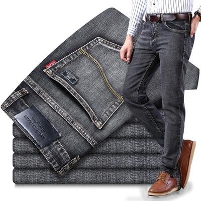 титульная страница > Мужская мода > Повседневные демисезонные мужские эластичные джинсовые брюки в классическом стиле прямого кроя