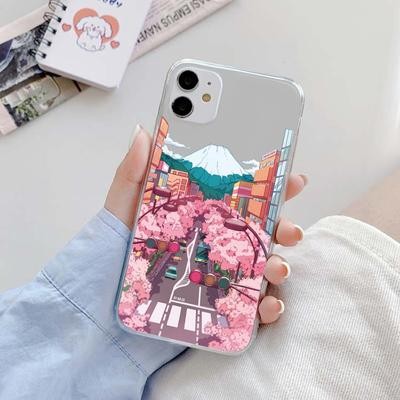 Японский эстетический прозрачный чехол Traint Moun Fuji для iPhone 14 13 12 11 Pro Max 8 7 Redmi 12C