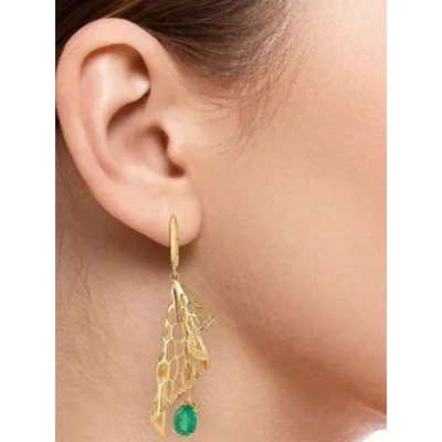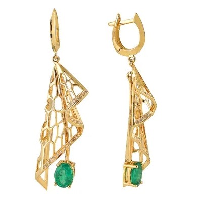 титульная страница > Ювелирные изделия > G.st. ЮВЕЛИРНЫЙ ЗАВОД ЗОЛОТОЙ СТАНДАРТ Серьги Балет из желтого золота с натуральными изумрудами и бр